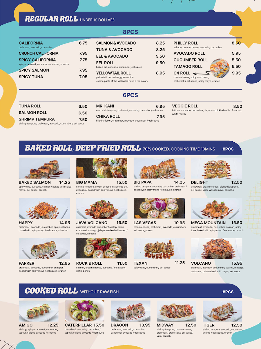 cream cheese, spicy crabmeat, crab stick / eel sauce, spicy mayo, crunch