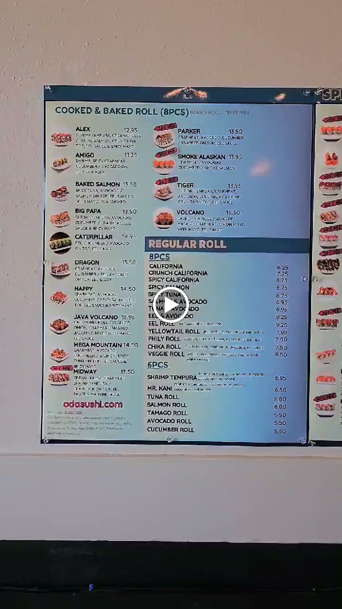 Tiger Roll - shrimp tempura, crabmeat, avocado, cucumber / shrimp, crunch, eel sauce