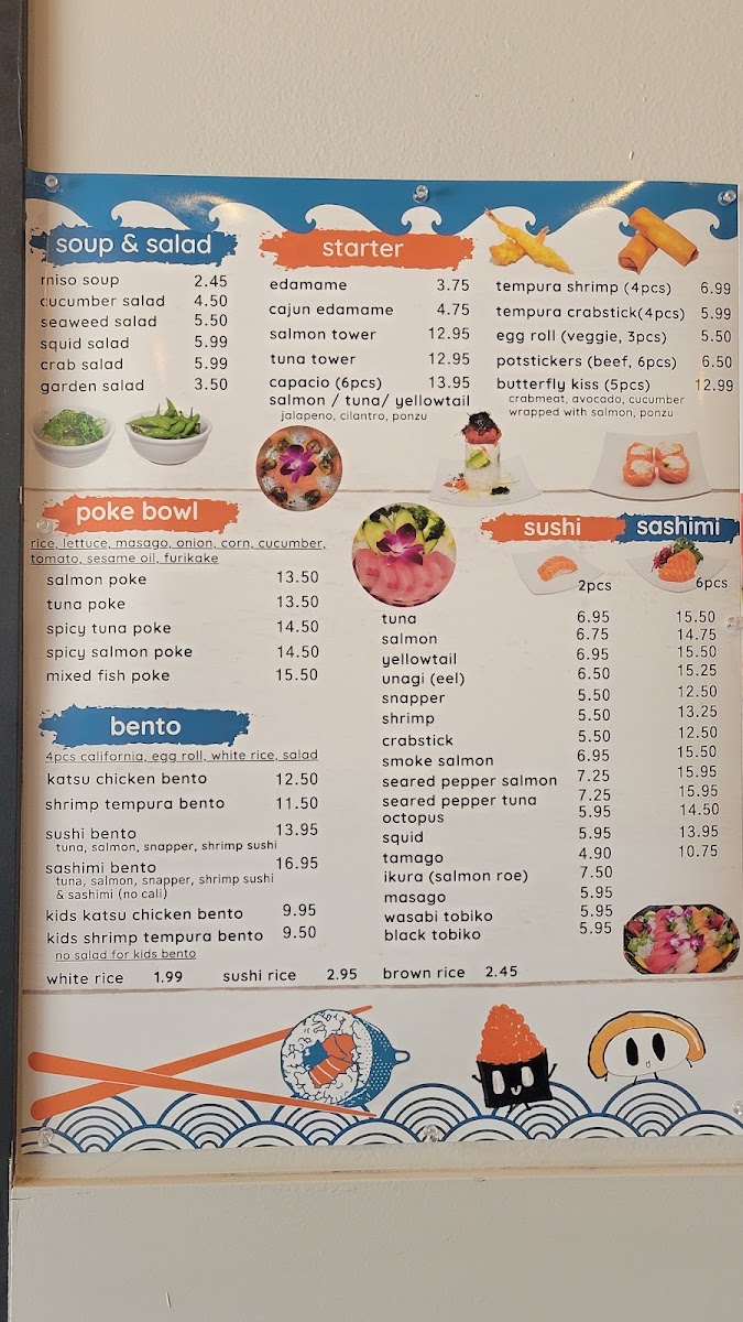 Rice, Lettuce, Masago, Onion, Corn, Cucumber, Tomatoes, Furikake, Sesame oil with sesame shoyu